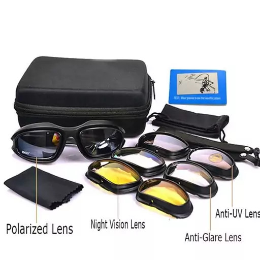 این عینک دارای چهار لنز مختلف شامل دید در شب، دید آفتابی، دید در محیط ابری، دید در مقابل تابش مستقیم آفتاب با قابلیت تغییر و نصب هر یک از لنزها روی فریم بر حسب شرایط آب و هوای موجود می باشد .