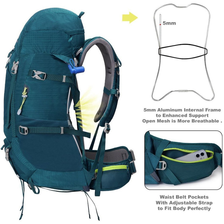 کوله پشتی ADVANCE 45+5 با داشتن 50 لیتر حجم برای انواع برنامه های یک روزه سنگین یا چند روزه سبک بسیار مناسب است ، پشتی این کوله که از نوع توری (ساخته شده از پارچه مش 3D) می باشد به صورت کاملا استاندارد و متناسب با آناتومی بدن انسان طراحی شده است و هیچ گونه با غیراصولی و غلطی به شانه ها و کمر وارد نمی شود ، اسکلت بندی این کوله یک شاسی آلومینیومی فوق سبک با قطر 5 میلی متر می باشد که وظیفه توضیع نیرو در تمام جهت پشتی را بر عهده دارد ، همچنین این پشتی آیرودینامیک بوده و دارای قابیلت Air Contact با حداکثر میزان گردش هواست تا مانع از تعریق کمر در مسافت ها و پیمایش های طولانی مدت گردد .