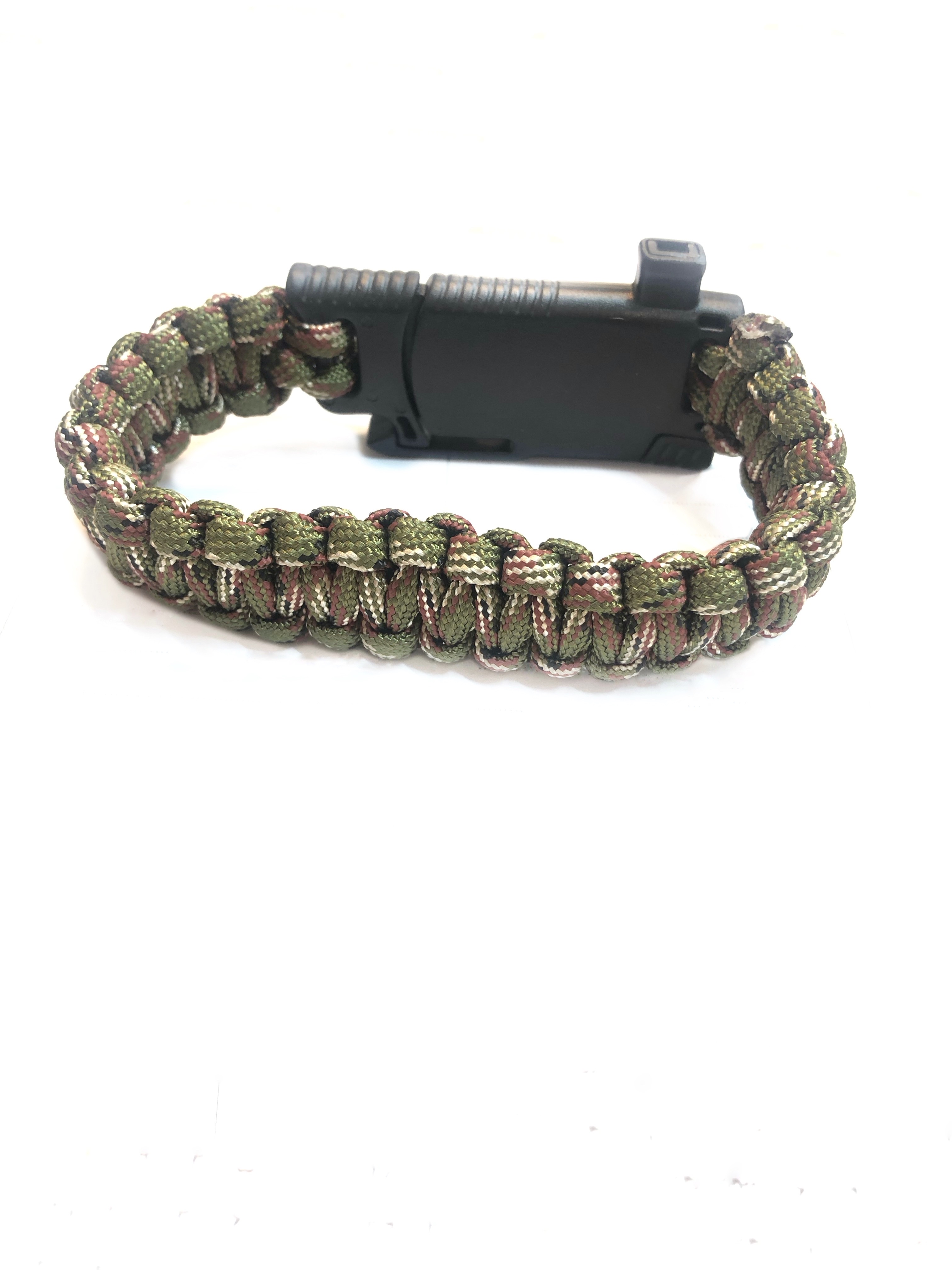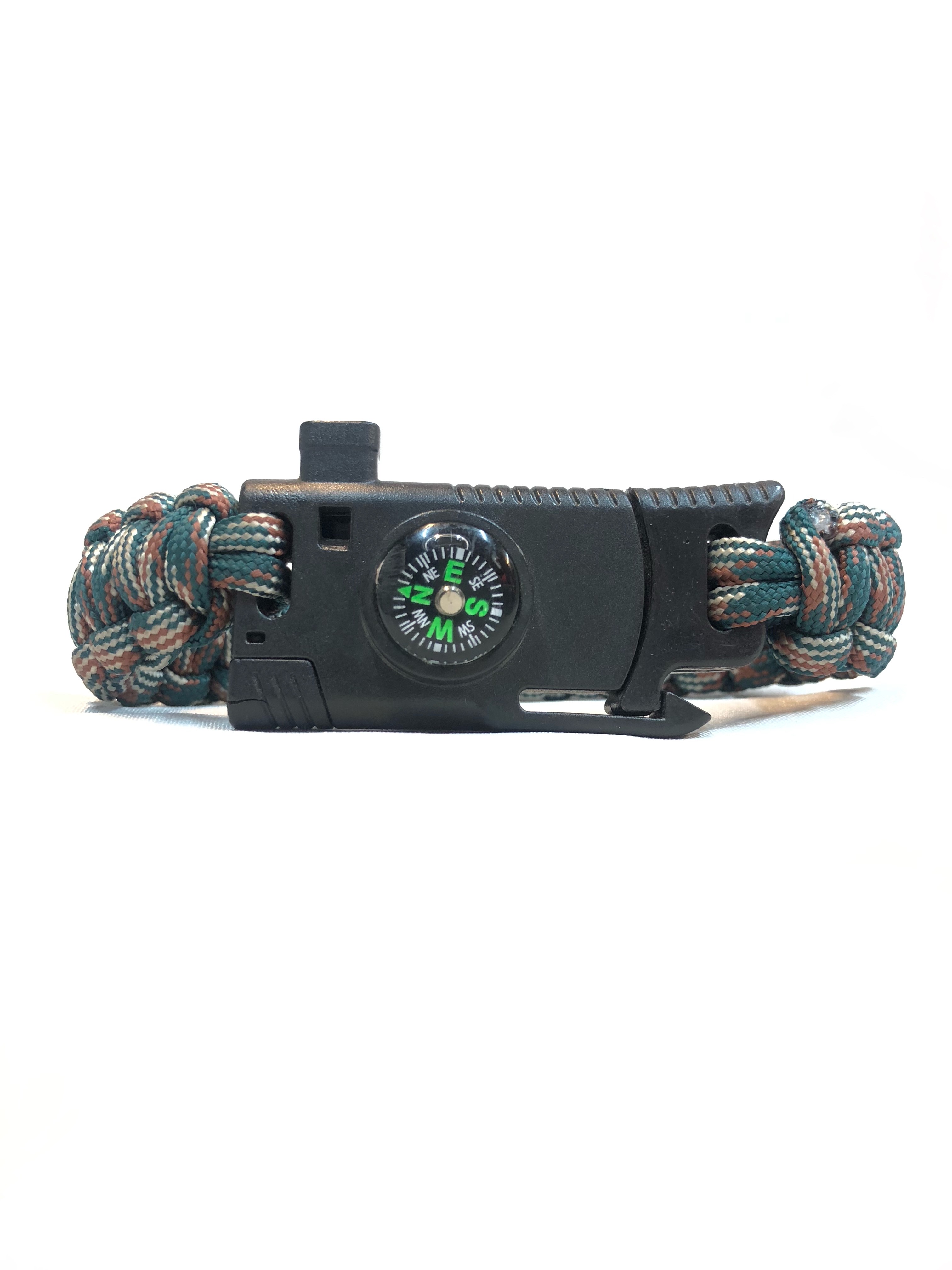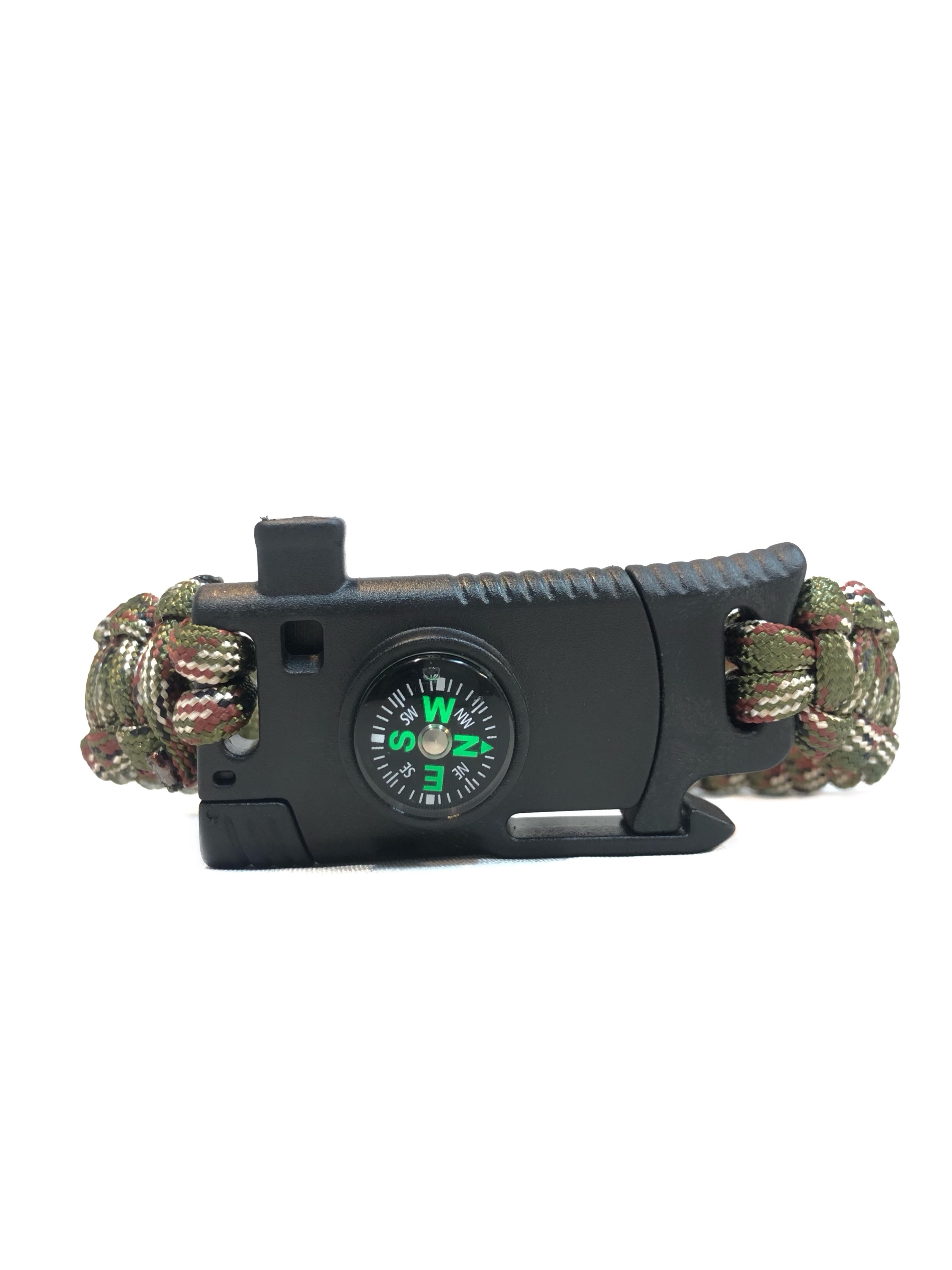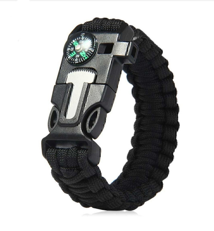 دارای قطب نما ، سنگ چخماق ،سوت ،تیغه برش و ۳ متر طناب پاراکورد بافته شده به صورت دستبند