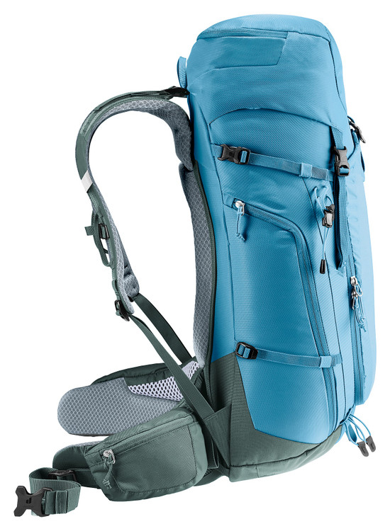 دیوتر Trail Pro 36 به بندهای شانهای ActiveFit با قابلیت تطبیق خودکار، بند استرنوم قابل تنظیم در دو جهت و تسمههای فشردهسازی مجهز شده است. همچنین بالههای کمری مشبک و راحت باعث توزیع یکنواخت وزن شده و احساس فشاری روی کمر یا شانهها ایجاد نمیکند. این ساختار امکان حمل ایمن و آسان بارهای 6 تا 10 کیلوگرمی را حتی در مسیرهای دشوار فراهم میسازد.