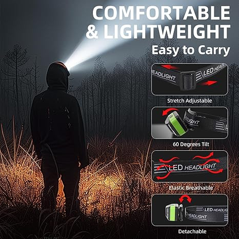 همچنین دارای حالت حسگر حرکت است. شما میتوانید به راحتی با تکان دادن دستتان چراغ را روشن یا خاموش کنید که این کار راحتتر است و مانع کثیف شدن چراغ سر میشود وقتی که دستانتان کثیف است.【چراغ پیشانی قابل شارژ، فوقالعاده روشن】ویژگی برجسته چراغ پیشانی w18روشنایی فوقالعاده آن است. این چراغ پیشانی با یک چراغ LED قدرتمند مجهز شده است و نوری روشن و یکنواخت را فراهم میکند که اطمینان میدهد هر جزئی از فضای کار شما قابل مشاهده است. این چراغ میتواند به راحتی تمام چادرها و مسیرها را روشن کند. بیشتر یک لوازم شکار است و دارای یک باتری قابل شارژ داخلی قدرتمند است که بیش از 5 ساعت با یک بار شارژ کامل دوام میآورد. چراغ پیشانی قابل شارژ w18 دارای درگاه شارژ USB -C برای سهولت و سادگی در عملیات شارژ است.