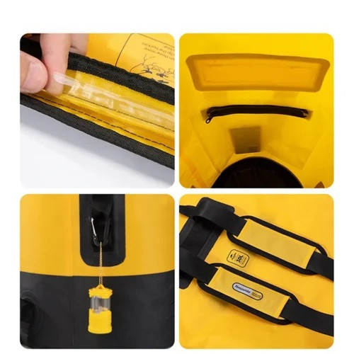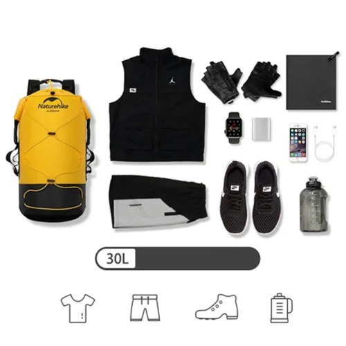 درای بگ نیچرهایک یک کوله پشتی کوچک مناسب ورزش و تفریح های آبی طراحی شده است. درای بگ نیچرهایک TB03-shimmer به دلیل ضد آب بودن وسایل و البسه شما را خشک و از آسیب رسیدن به وسایل الکترونیک شما جلوگیری می کند. حجم کوله پشتی ضد آب نیچرهایک 30 لیتر می باشد. بدنه این کوله پشتی ضد آب از باکیفیت ترین TPU ساخته شده است. به دلیل استفاده از سگک های قفلی دورافلکس به هیچ عنوان آب و رطوبت به داخل کوله نفوذ نمی کند. درون درای بگ نیچرهایک یک جیب ضد آب تعبیه شده است تا وسایل قابل تفکیک باشند. تا لباس های خیس با سایر وسایل در یک محفظه نباشند.