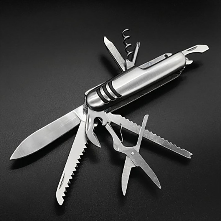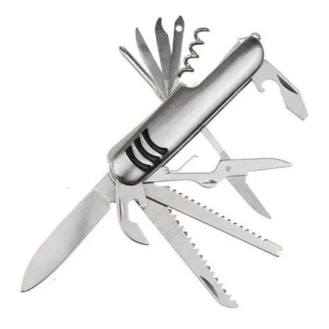 ابزار 11 کاره ،یک مجموعه چندکاره و جمع و جور است که ابزارهای ضروری را در خود جای داده است.بدنه ابزار تمام استیل است و در ابهاد بسیار کوچک و قابل حمل ساخته شده است. از این ابزار میتوانید برای کمپ و کوهنوردی و همچنین باز کردن بسته بندی ها و برش کاغذ استفاده نمایید.
