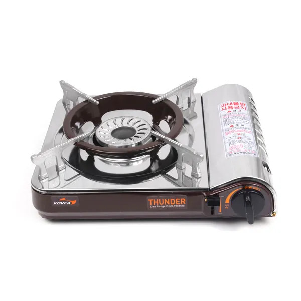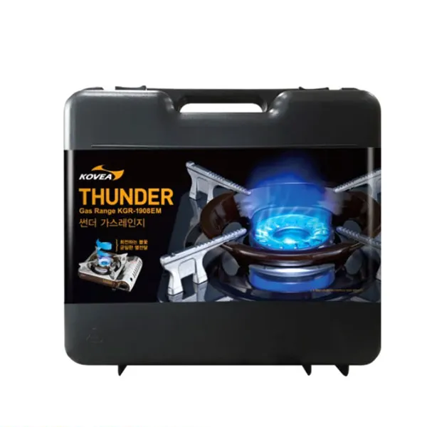 اجاق گاز کمپینگ کووآ KOVEA مدل THUNDER کد KGR-1908 یکی از محصولات بسیار کاربردی و پرطرفدار از کمپانی محبوب KOVEA (کُره جنوبی) بوده که جهت انجام آشپزی، گرم کردن غذا و کنسرو، درست کردن چای و قهوه و … در سفر و برنامه های کمپینگ و طبیعت گردی مناسب میباشد، در ساختار این اجاق گاز سفری از استیل ضد زنگ استفاده گردیده و از وزن سبک و ابعاد کامپکتی نیز برخوردار میباشد.