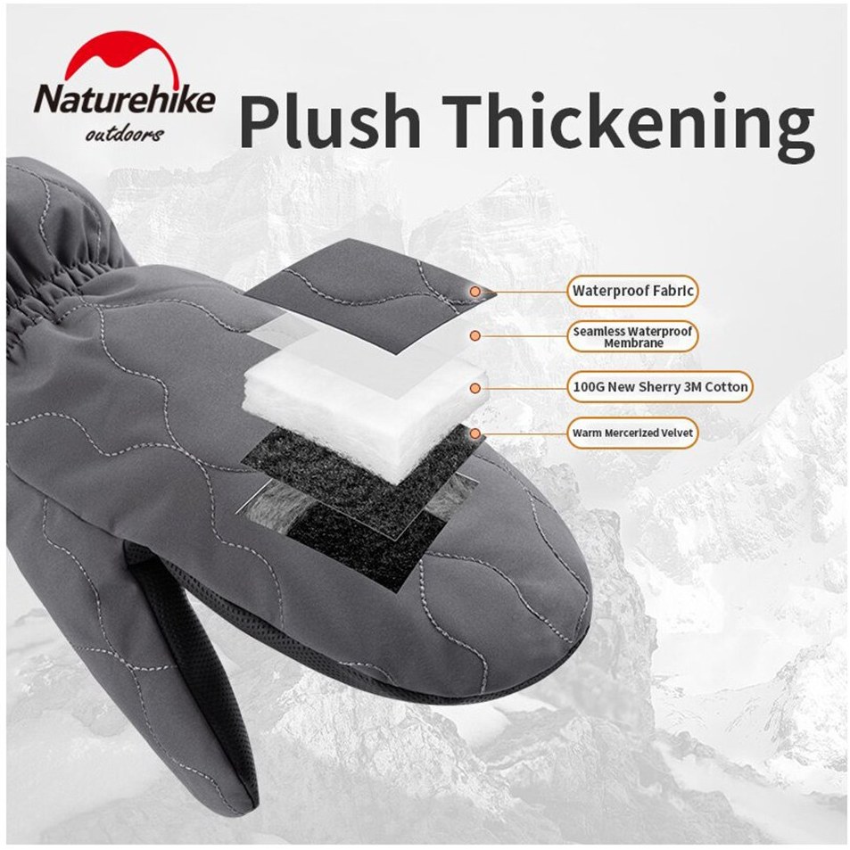 دستکش دو انگشتی نیچرهایک GL 14 در بین انواع دستکش دو انگشتی دارای چند ویژگی می باشد که آنرا متمایز می نماید. این دستکش دارای غشای رویی بدون درز ضدآب است و دارای ویژگی ضدآب ضدباد می باشد. ترکیب دستکش از پلی استر، PU و عایق تینسولیت 3M که به عنوان پنبه مصنوعی 3M نیز شناخته می شود پر شده است. بافت این دستکش آبگریز بوده و مناسب دمای تا منفی ده درجه سانتیگراد می باشد. دستکش دو انگشتی نیچرهایک در سه سایز ارایه می گردد و وزن آن 120 گرم می باشد.