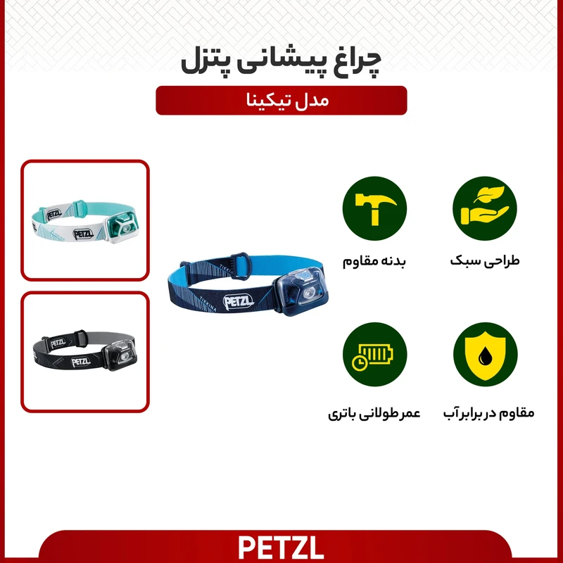 چراغ پیشانی تیکینا پتزل Petzl Tikkina Hybrid HeadLamp با قدرت 250 لومن برای فعالیت های طبیعت گردی، کمپینگ، کوه پیمایی و یا مسافرت و همچنین برای فعالیت های روزانه طراحی شده است. چراغ پیشانی تیکینا پتزل Petzl Tikkina Hybrid HeadLamp با قدرت 250 لومن برای فعالیت های طبیعت گردی، کمپینگ، کوه پیمایی و یا مسافرت و همچنین برای فعالیت های روزانه طراحی شده است. قابلیت جالب چراغ پیشانی این است که از تکنولوژی Hybrid Concept پتزل بهره می برد؛ به این معنا که در آن می توان از هم از باتری AAA استاندارد استفاده کرد و هم باتری های شارژی پتزل به نام Core ! ویژگی های چراغ پیشانی تیکینا پتزل Tikkina Hybrid HeadLamp : بسیار ساده و جمع و جور در عین حال با طول عمر نوردهی بالا است. دارای نوردهی 250 لومنی و پرتو دهی عریض است. جمع و جور و بسیار سبک زمان نوردهی بالا کارکرد بسیار ساده، به لطف تک دکمه ای که دارد همه کارها بوسیله آن انجام می شود. دارای سه حالت نوردهی دارای تکنولوژی Hybrid Concept (تامین انرژی دو حالته باتری استاندارد یا باتری شارژی Core) است.