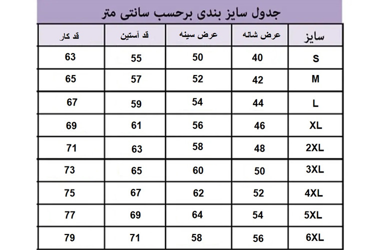 توجه : درصورتی که دور سینه و طول کاپشن برای شما مثلا در سایز L قرار گرفت ولی دور کمر در سایز XL بود نیازی به انتخاب سایز XL نیست زیرا معیار اصلی همان دور سینه می باشد .