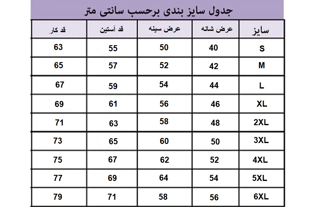 توجه : درصورتی که دور سینه و طول کاپشن برای شما مثلا در سایز L قرار گرفت ولی دور کمر در سایز XL بود نیازی به انتخاب سایز XL نیست زیرا معیار اصلی همان دور سینه می باشد .