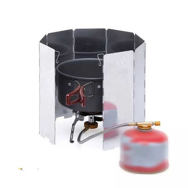 قبل از استفاده از اجاق گاز، جهت باد را بررسی کنید.بادگیر را باز کنید و دو پایه خمیده را زیر اجاق گاز خود قرار دهید. کل بادگیر را کنار اجاق گاز خود قرار دهید و بررسی کنید که فضای کافی برای استفاده از ست آشپزی شما وجود دارد. میخ ها را در زمین قرار دهید تا مقاومت در برابر باد افزایش یابد.